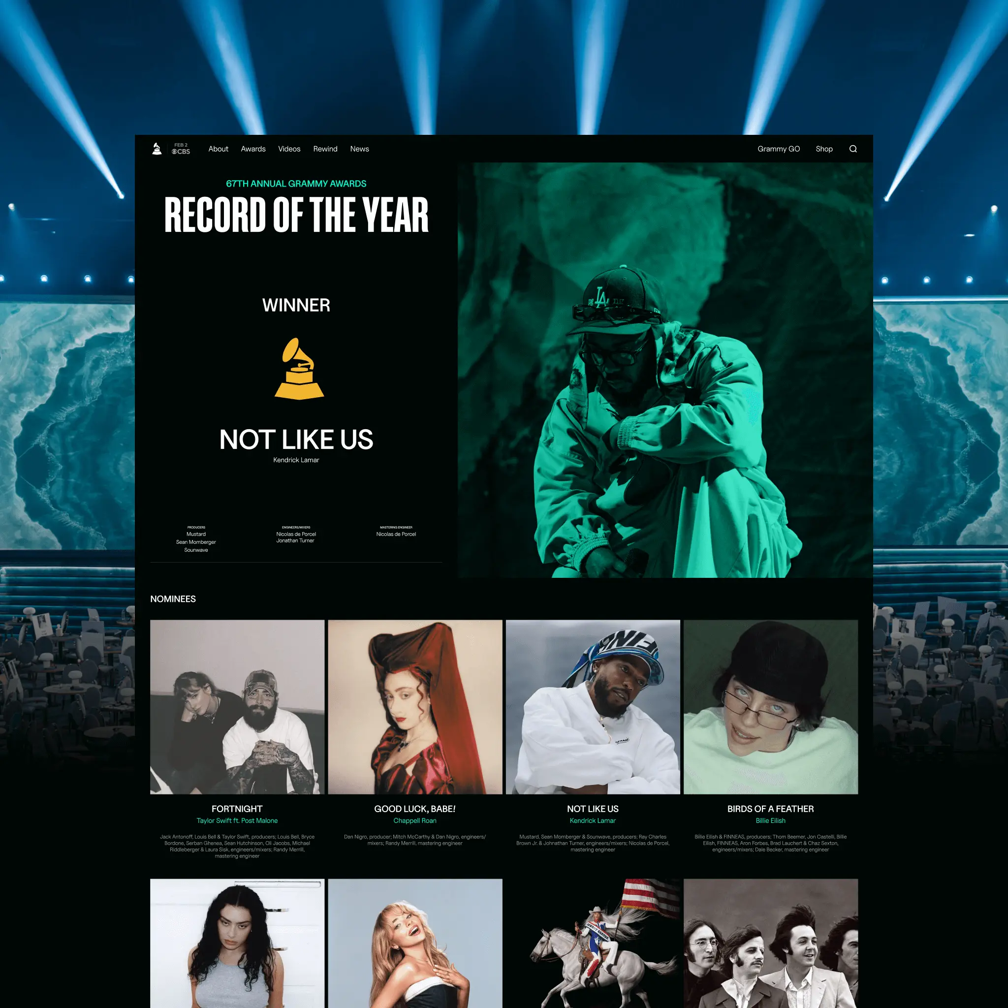 The 67th Annual Grammy Awards took place on February 2, 2025, at the Crypto.com Arena in Los Angeles, California. The ceremony recognized recordings, compositions, and artists that were released between September 16, 2023, and August 30, 2024.
